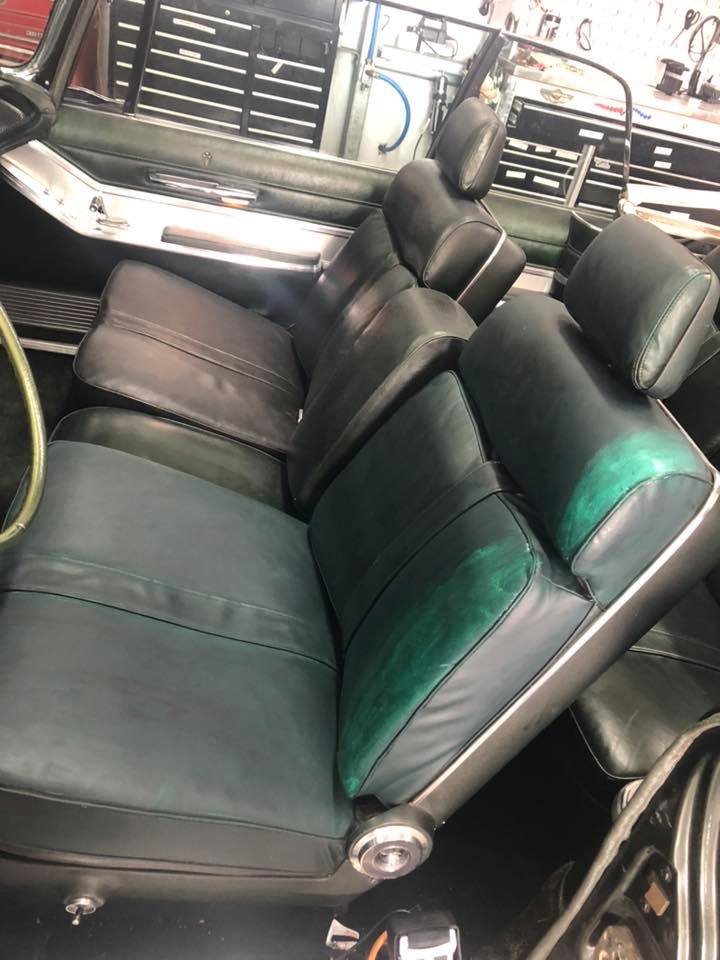 For the last 40 years I’ve always had a big Chrysler convertible. There’s nothing like cruising down a country road at 70 with the top down in a big barge. First I had a 67 Newport, then a 64 300 and then a 65 300. About 15 years ago I bought this off the original owner old lady, who was in a nursing home. We’ve been going through it to fix anything not perfect. I intend to keep this car forever. The driver’s seat was a little rough, so I bought some leather repair and green dye.